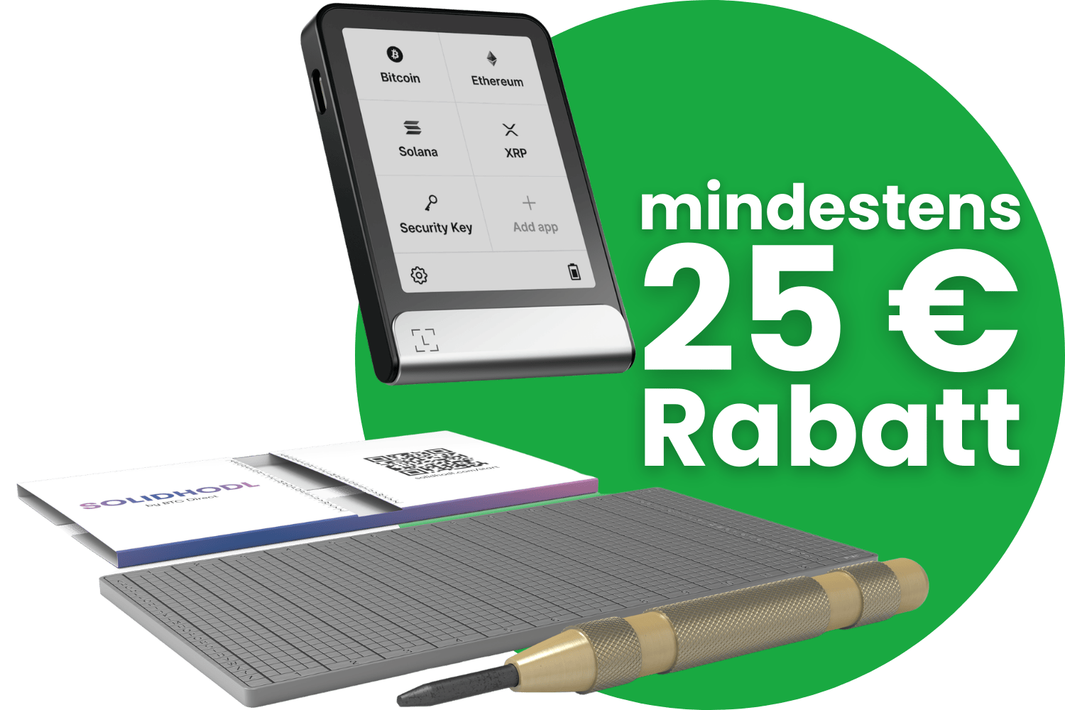 Kaufen Sie ein Hardware-Wallet + SOLIDHODL Bundle und erhalten Sie 25 € Rabatt.