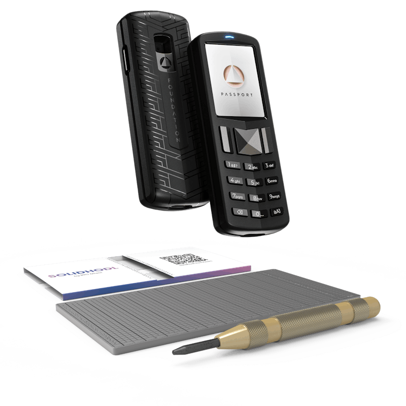 Schützen Sie Ihre Krypto mit der perfekten Kombination aus Passport Core und SOLIDHODL. Verwenden Sie die Passport Hardware-Wallet, um Ihre Krypto vor Hackern zu schützen. Kombinieren Sie dies mit SOLIDHODL Core, um ein Backup Ihrer 24-Wort-Wiederherstellungssatz zu erstellen, der feuer- und extrembedingungsbeständig ist. Zusammen schützen sie Ihr Krypto-Vermögen, damit Sie mit ruhigem Gewissen in Krypto investieren können.