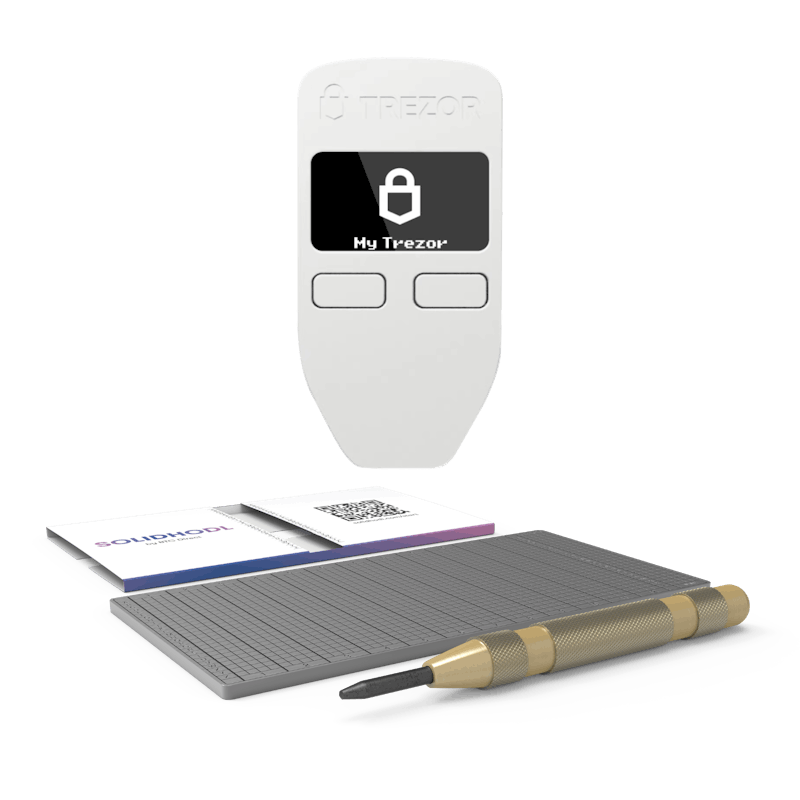 Schützen Sie Ihre Krypto mit der perfekten Kombination aus Trezor One und SOLIDHODL. Verwenden Sie die Trezor One Hardware-Wallet, um Ihre Krypto vor Hackern zu schützen. Kombinieren Sie dies mit SOLIDHODL, um ein Backup Ihrer 24-Wort-Wiederherstellungssatz zu erstellen, der feuer- und extrembedingungsbeständig ist. Zusammen schützen sie Ihr Krypto-Vermögen, damit Sie mit ruhigem Gewissen in Krypto investieren können.